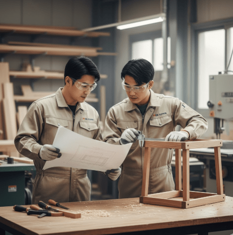 1. Nội dung công việc: Gia công sản phẩm gỗ theo bản vẽ, kiểm tra thành phẩm