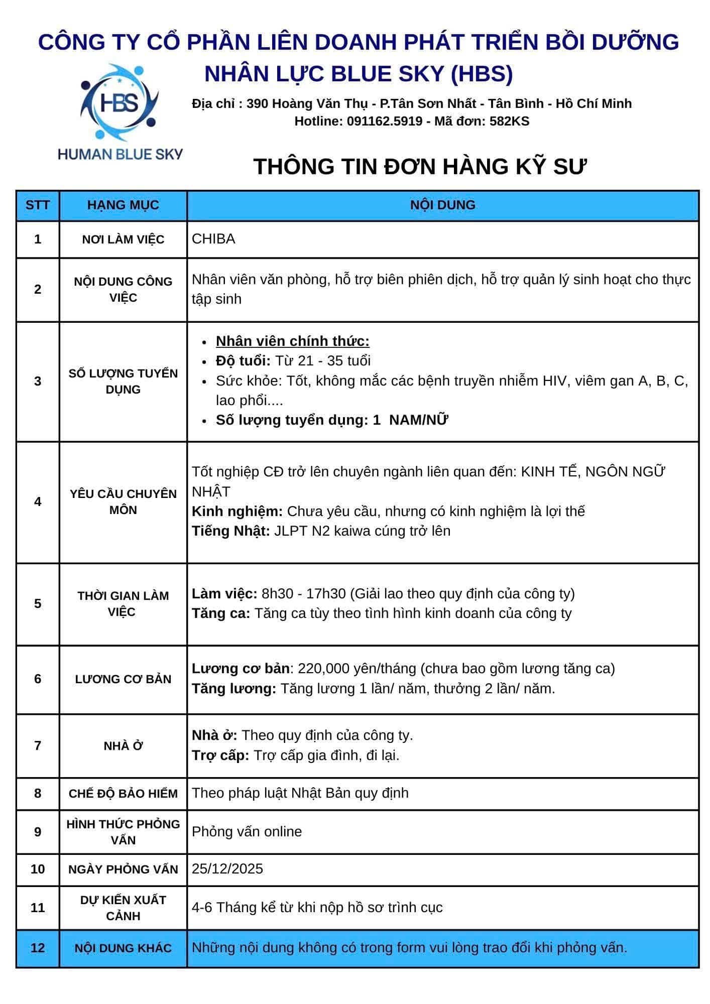Liên hệ ngay với HBS qua Page Human Blue Sky hoặc số điện thoại 0911 625 911 ( Hotline/ zalo ) để được hướng dẫn đăng ký đơn vận hành máy. Xem thêm các đơn hàng kỹ sư Nhật Bản tại đây.