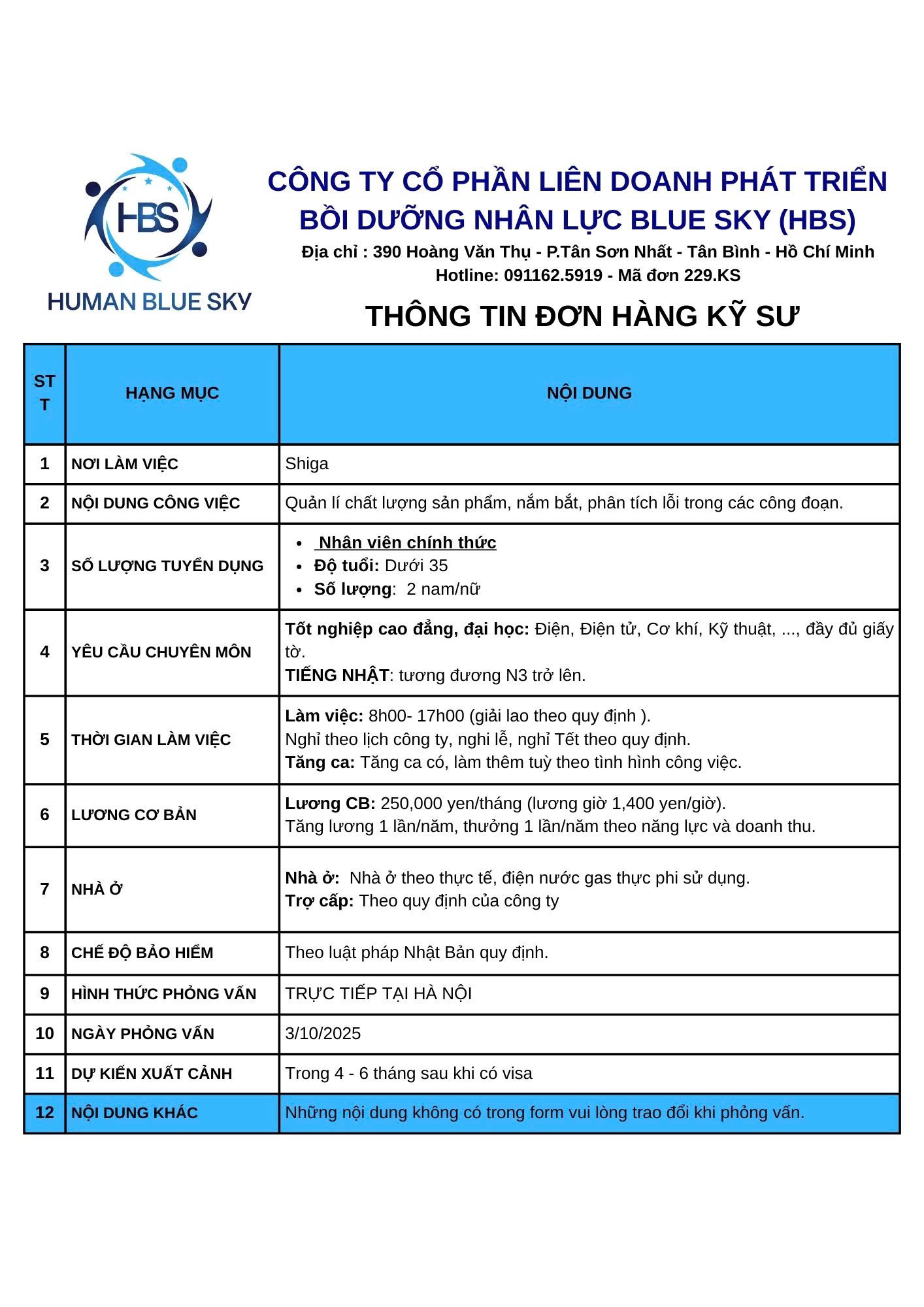 Liên hệ ngay với HBS qua Page Human Blue Sky hoặc số điện thoại 0911 625 911 ( Hotline/ zalo ) để được hướng dẫn đăng ký đơn vận hành máy. Xem thêm các đơn hàng kỹ sư Nhật Bản tại đây.