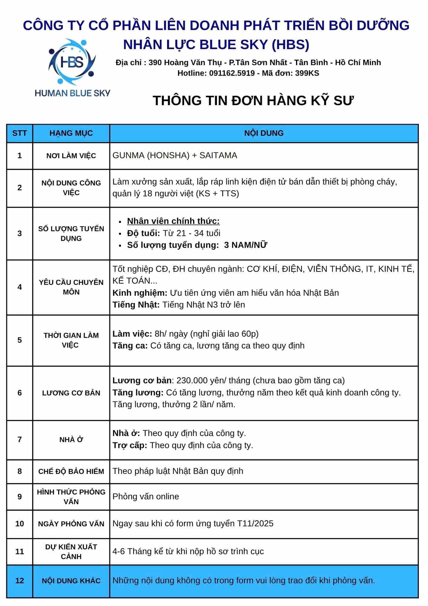 Liên hệ ngay với HBS qua Page Human Blue Sky hoặc số điện thoại 0911 625 911 ( Hotline/ zalo ) để được hướng dẫn đăng ký đơn vận hành máy. Xem thêm các đơn hàng kỹ sư Nhật Bản tại đây.