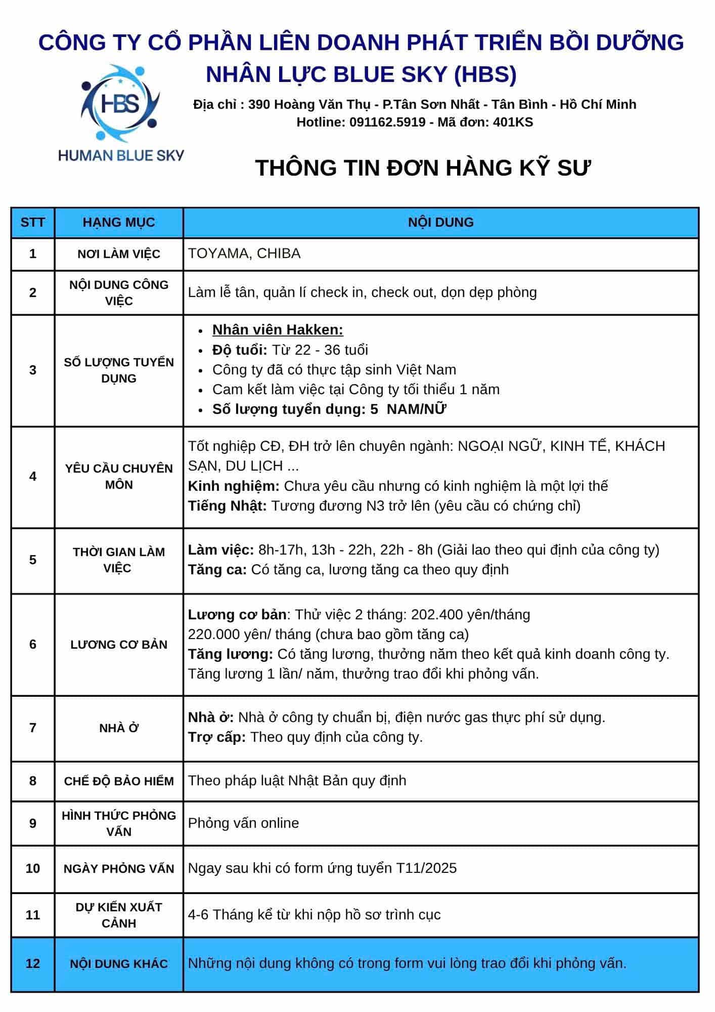Liên hệ ngay với HBS qua Page Human Blue Sky hoặc số điện thoại 0911 625 911 ( Hotline/ zalo ) để được hướng dẫn đăng ký đơn vận hành máy. Xem thêm các đơn hàng kỹ sư Nhật Bản tại đây.