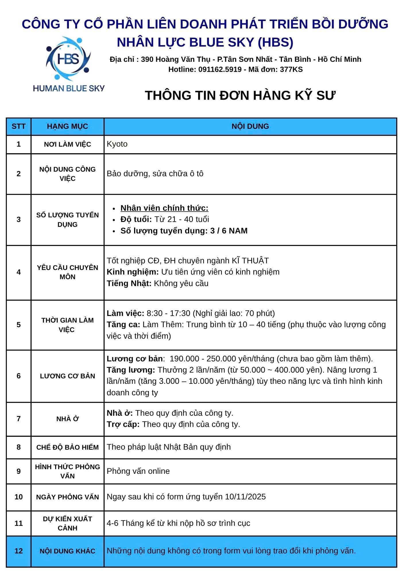 Liên hệ ngay với HBS qua Page Human Blue Sky hoặc số điện thoại 0911 625 911 ( Hotline/ zalo ) để được hướng dẫn đăng ký đơn vận hành máy. Xem thêm các đơn hàng kỹ sư Nhật Bản tại đây