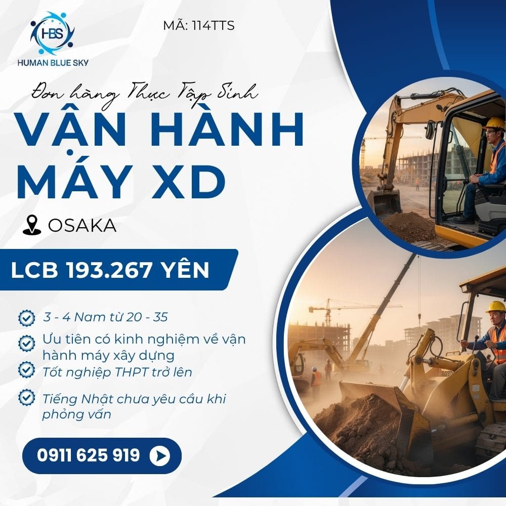 Liên hệ ngay với HBS qua Page Human Blue Sky hoặc số điện thoại 0911 625 911 ( Hotline/ zalo ) để được hướng dẫn đăng ký đơn vận hành máy. Xem thêm các đơn hàng XKLĐNhật Bản tại đây.