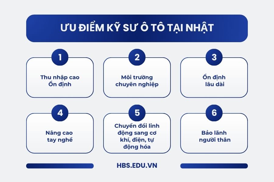Ô tô là ngành thiết yếu tại Nhật, nhu cầu tuyển dụng kỹ sư luôn ở mức cao. Lộ trình thăng tiến rõ ràng